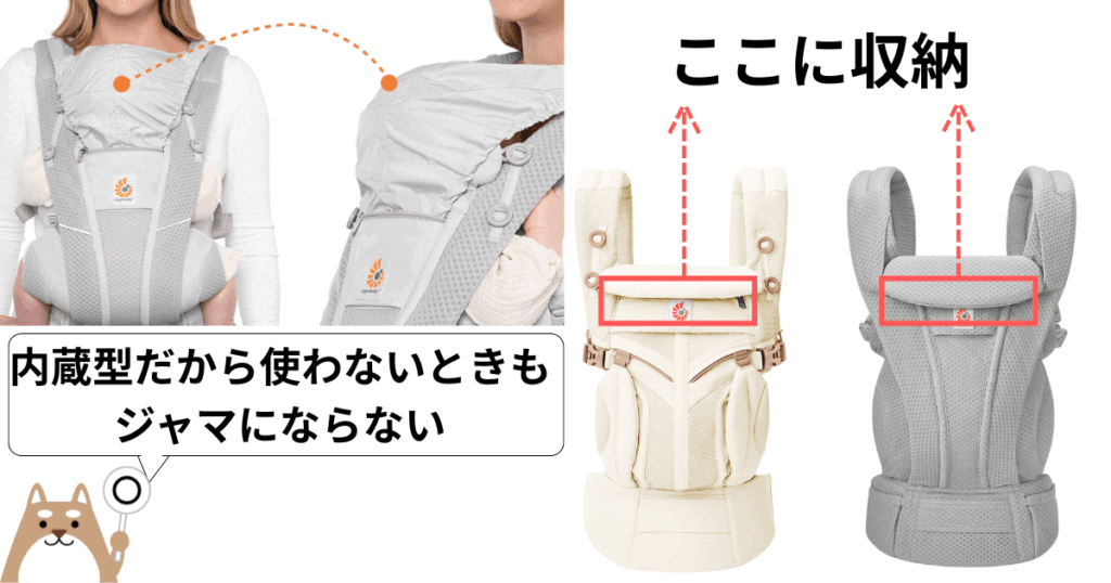 - 赤ちゃんの背中あたりにあるポケット(オムニデラックスのみ)…ガーゼやハンカチが入るくらい